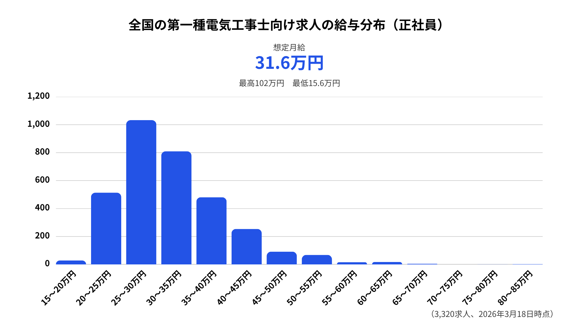 全国平均から読み解く「正社員電気工事士」のボリュームゾーン