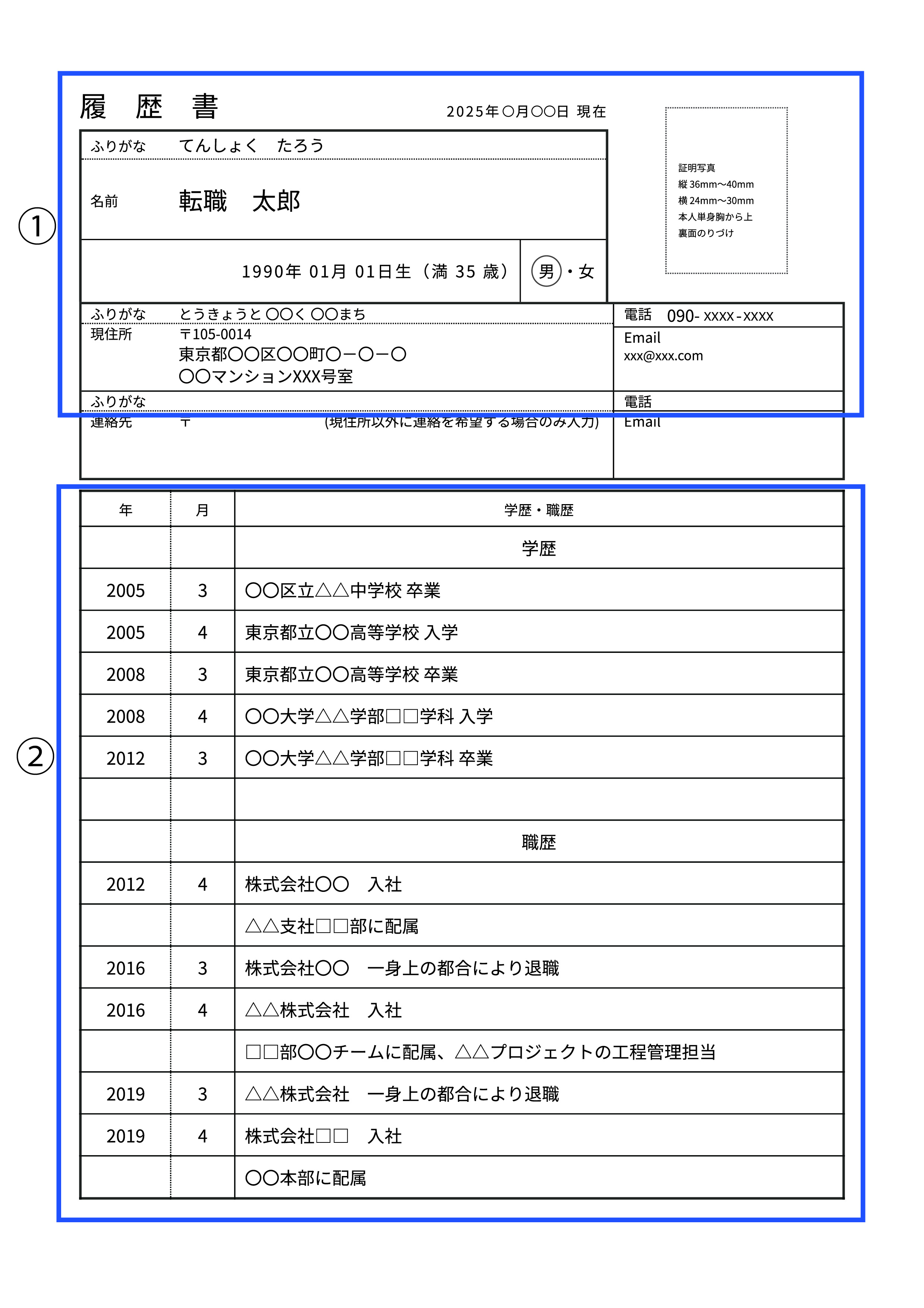 - 部署名や役職名も正確に記入し、異動歴があればその都度記載しましょう。